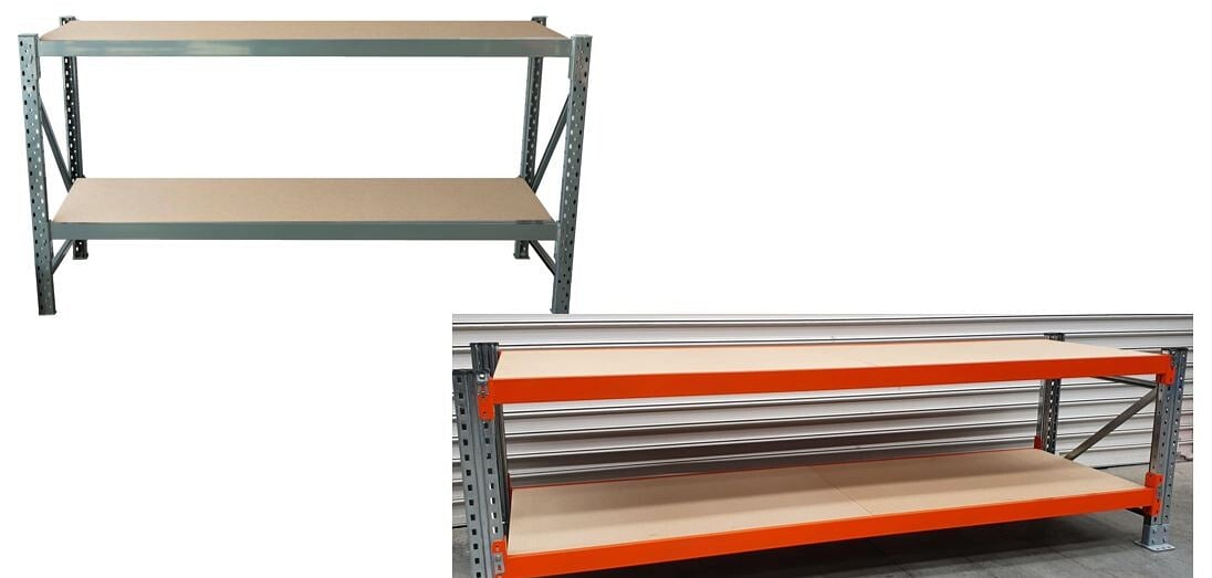 Our work benches are the perfect addition to any workshop, garage or shed. Either made from our long-span shelving units or pallet racking for more heavy-duty work.